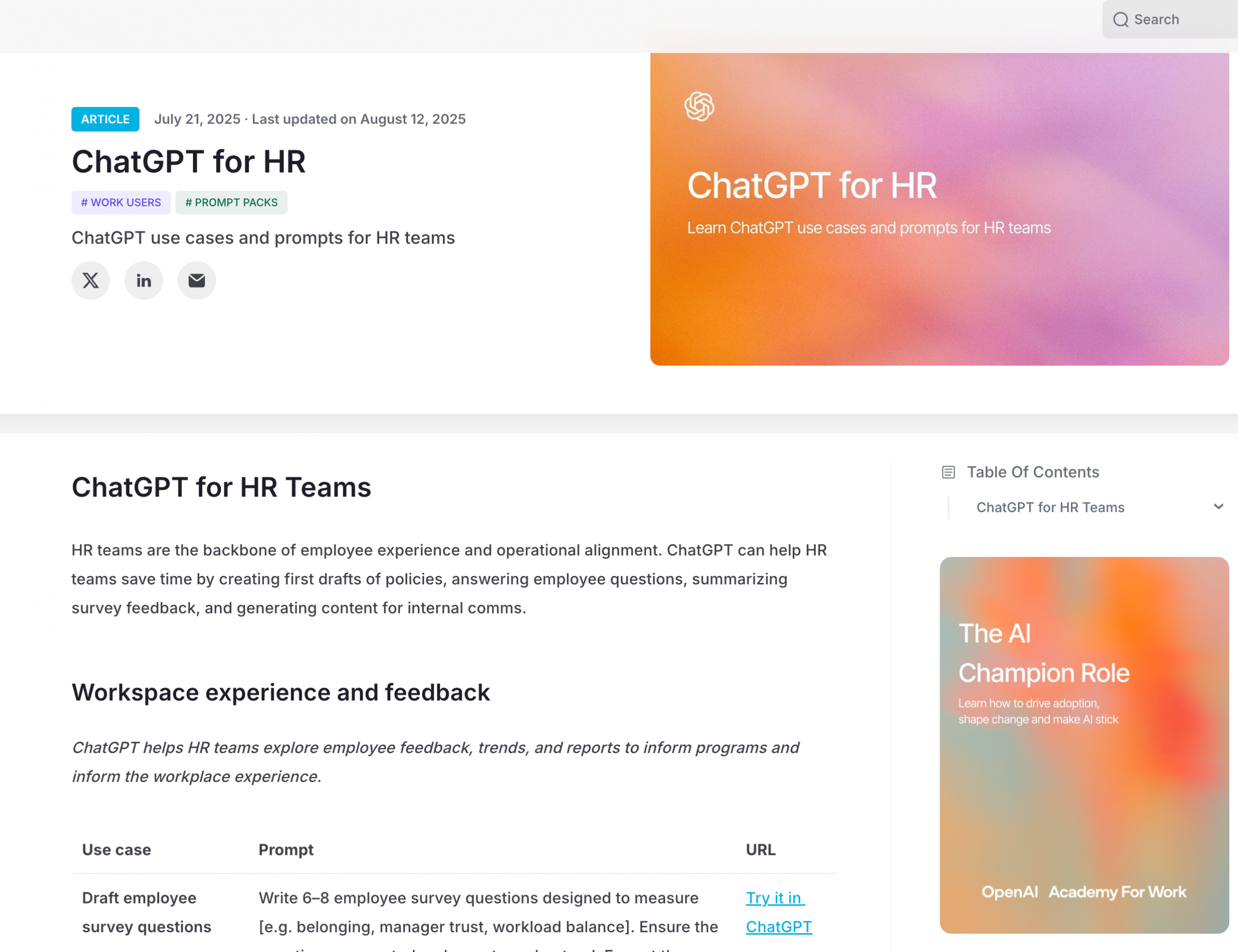 目前,该资源已在 OpenAI Academy 网站公开上线(academy.openai.com/public/clubs/work-users-ynjqu/resources/use-cases-hr),无需额外注册即可浏览。