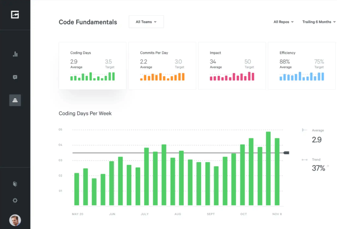 GitPrime就像是代码项目的分析仪表板。它在GitHub或Bitbucket等服务上监视您团队的代码存储库,跟踪逐个用户代码提交的事件,故障单活动以及不同团队成员如何解决拉取请求等问题。我们的想法是,通过以可视/一目了然的方式提供这些数据,它有助于识别瓶颈并突出显示您的团队最有效的位置。