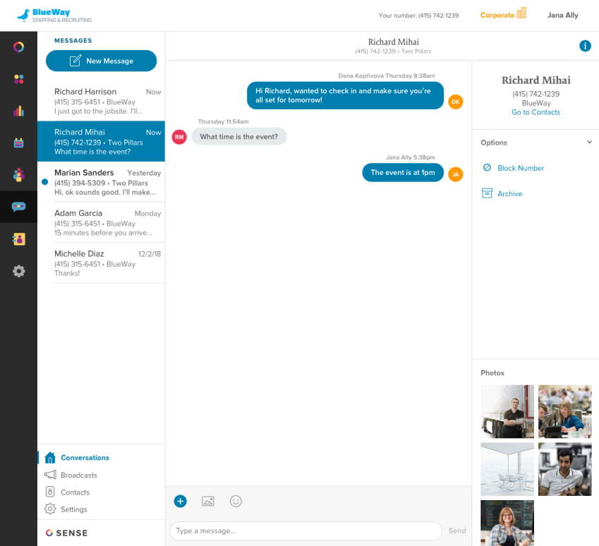 其中一家公司是Sense,一家敬业度和沟通平台,近日宣布已经在Alphabet的GV领导的一系列B轮融资中筹集了1350万美元,并由Accel参与。除了资金外,这家总部位于旧金山的公司还取消了对新产品的限制,该产品毫不含糊地称为Messaging,这是一种双向SMS工具,使招聘人员能够通过基于桌面的集中界面与候选人和工作人员进行交流。