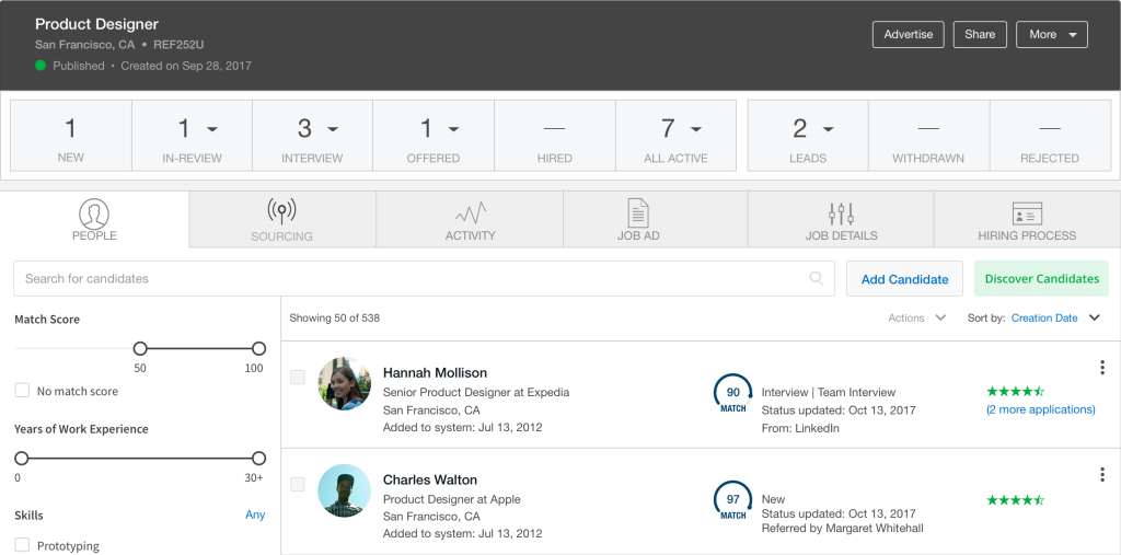 SmartRecruiters成立于2010年,是一个软件即服务(SaaS)平台,涵盖整个招聘流程,从营销新职位到跟踪应用程序,并提供最终报价。
