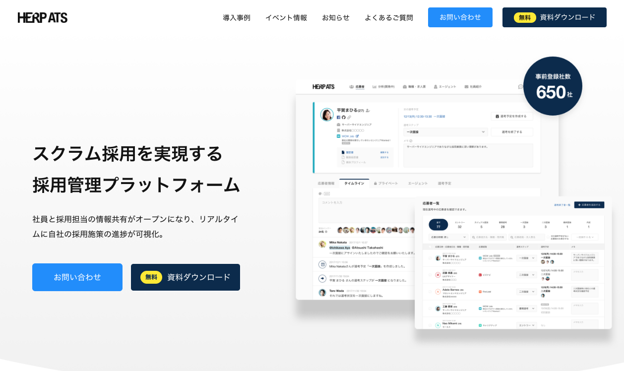 HERP所提供的HERPATS不仅支持招聘人员,还支持在整个企业(包括现场员工)中进行招聘活动的企业。通过自动协调多个招聘介质和信息,与Slack合作,实现与现场成员快速的信息共享。支持员工积极参与招聘活动。