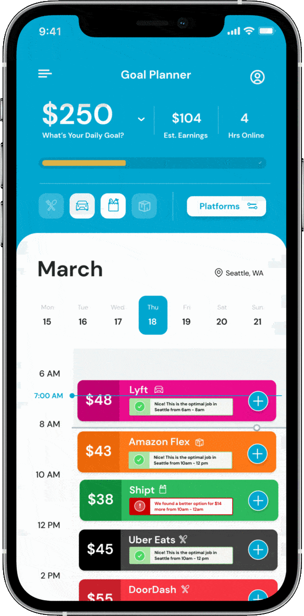 Solo跟踪包括Uber、Doordash和Instacart在内的多个工作平台的数据,以提供城市级别的薪酬和绩效基准,包括Solo保证的逐小时收入预测,如果薪酬较低则补足差额。与几个零工平台合作的Solo用户Devin Jansa说:"