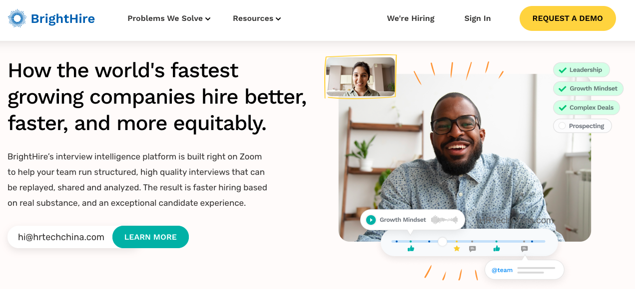 这笔资金肯定了我们正走在有所作为的道路上。用我们的顾问亚当-格兰特的话说,"没有什么决定比招聘对文化和业绩的影响更大。招聘速度更快、更智能、更公平的公司获得了竞争优势,而BrightHire已经建立了领导者和管理者迫切需要的面试和招聘平台,以实现这一目标。"