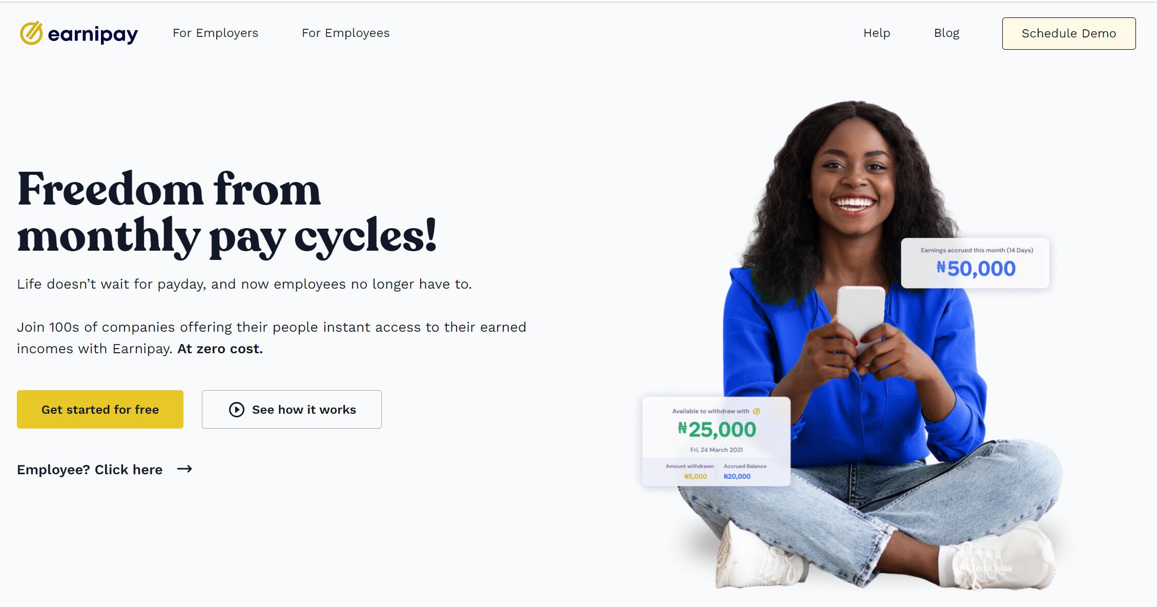 Earnipay正在建立一个全球知名的挣取工资的平台。但Onwuzulike将该公司描述为一个针对员工的财务健康解决方案,其中第一个产品是按需获取工资。