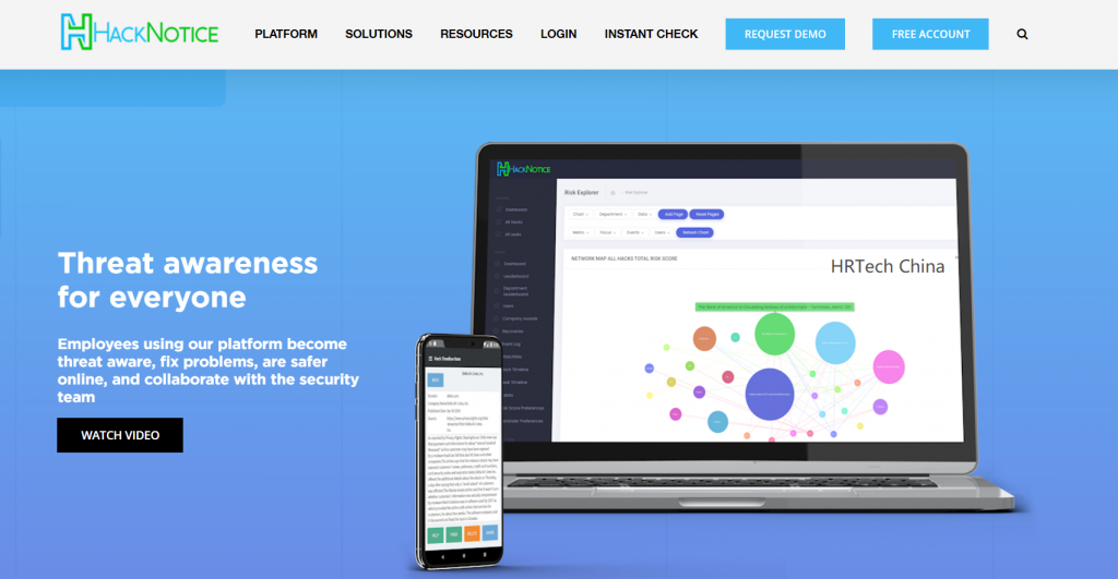 HackNotice的直观平台使员工能够了解黑客如何威胁他们,鼓励员工与安全团队合作并采取行动防止网络攻击。HackNotice的商业客户注意到,越来越多的员工养成了更安全的在线习惯,并自愿寻求安全培训。HackNotice中强大的分析和报告工具使安全团队能够了解每个员工/部门的风险。