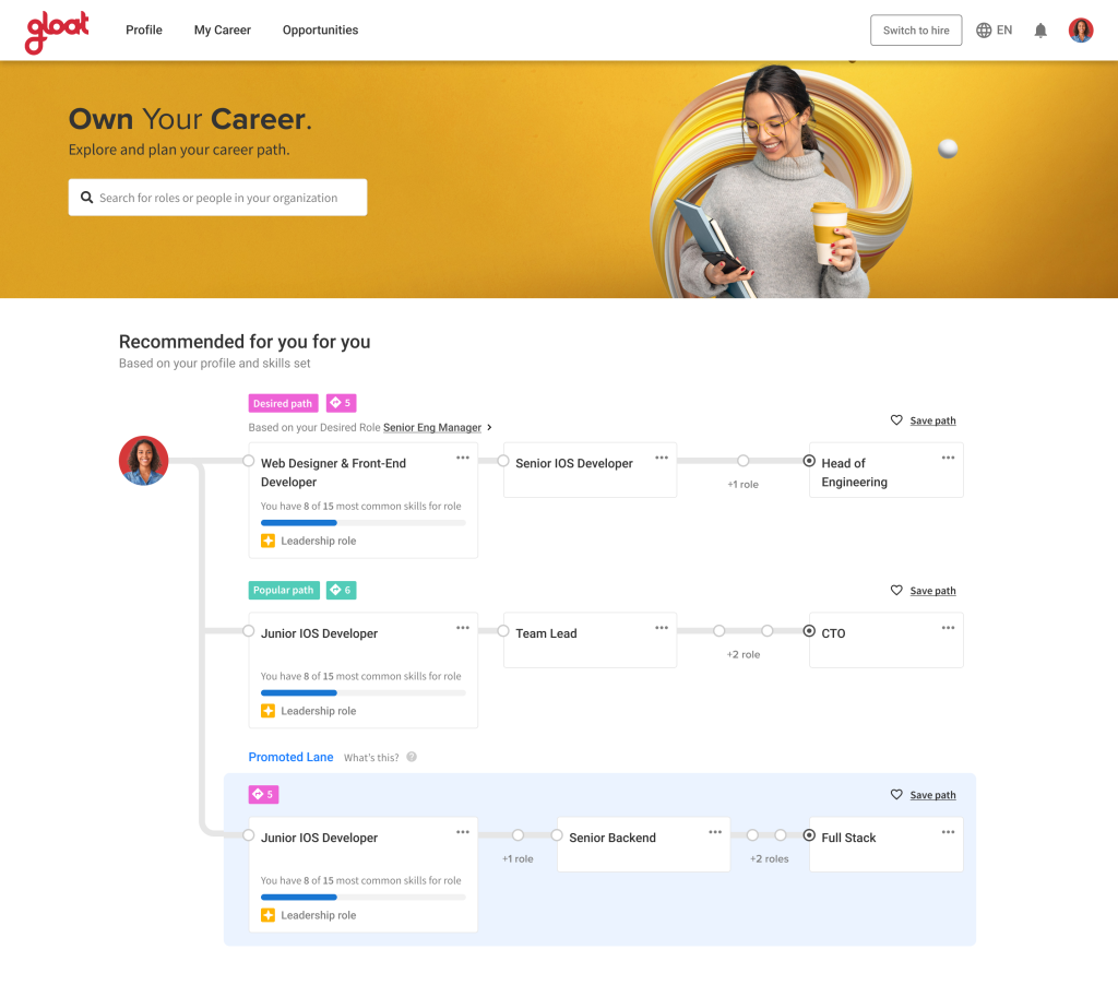 通过结合其由人工智能驱动的人才市场和劳动力智能,Gloat帮助企业打破孤岛,大规模分析数以千计的技能,并为战略人才决策提炼出关键的见解。
