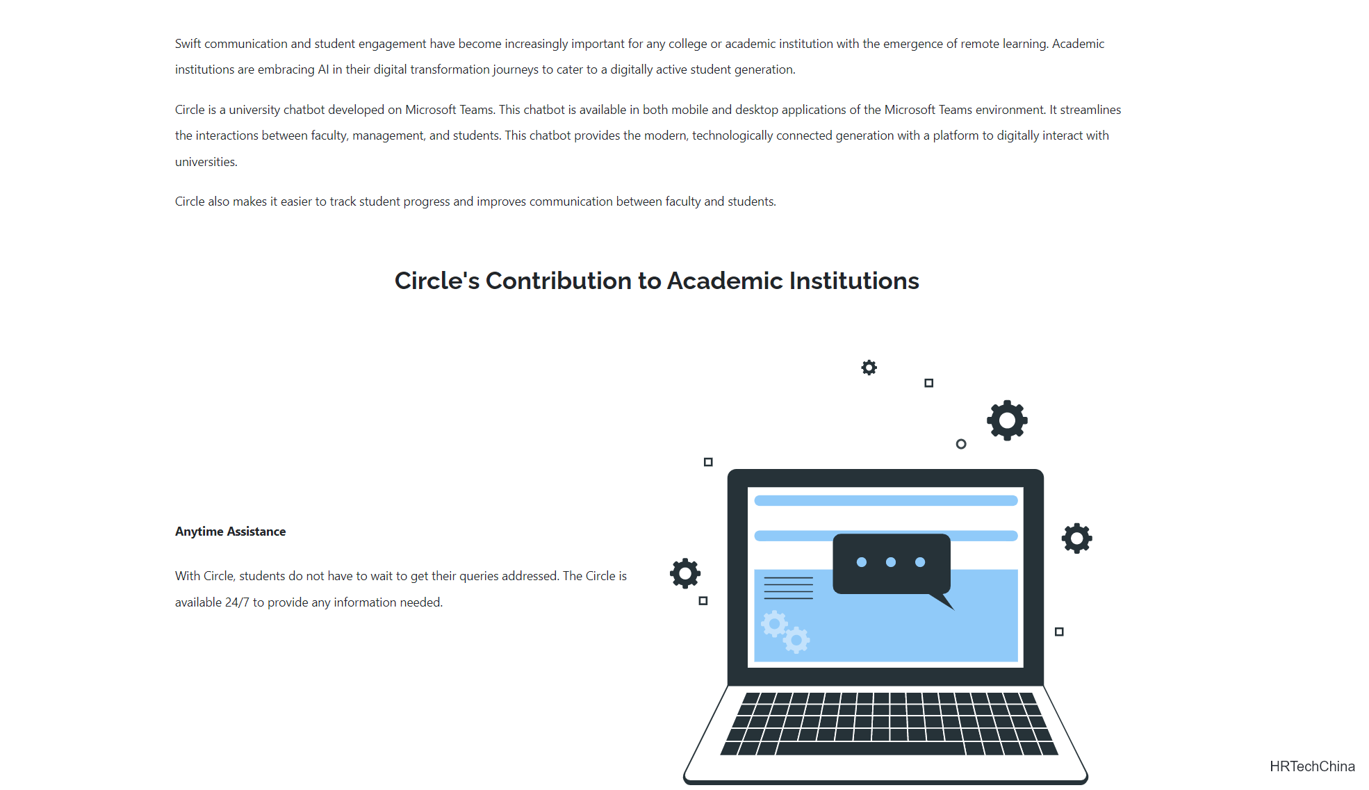 Circle 还可以更轻松地跟踪学生进度并改善教师和学生之间的沟通。使用 Circle,学生不必等待教师解决他们的疑问。该平台全天候提供所需的任何信息。借助 Circle,教师可以联系更多学生,并自动发送考试提醒、通知和预定的电子邮件。使用Circle 上的 MS Teams,学生和教师可以轻松共享文件、项目、作业并改善互动。