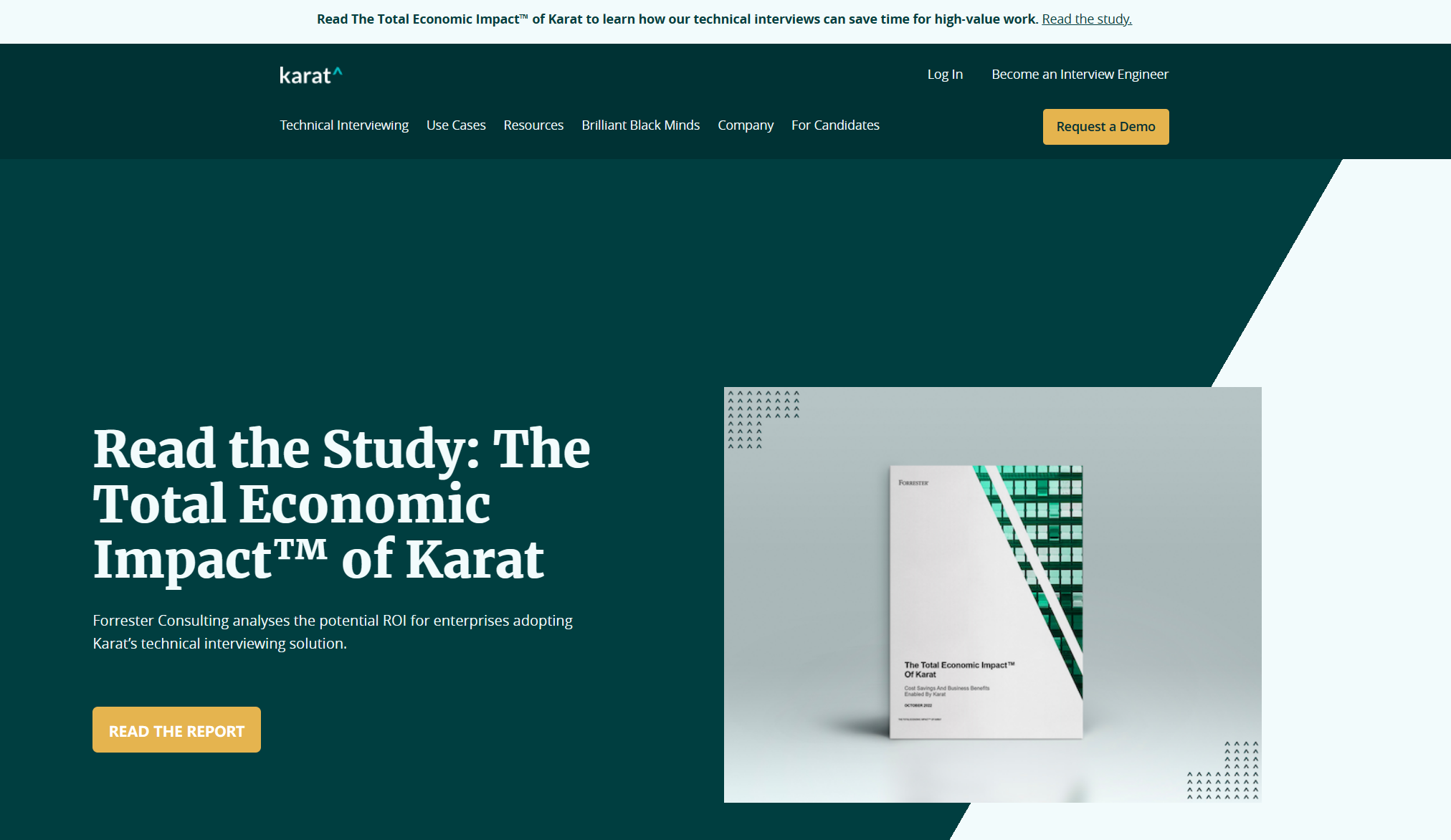 Karat作为一家美国招聘服务提供商,通过结合真人(Interview Engineer)和自动化系统,推出24/7的Interviewing Cloud,来帮助公司节省在后续的技术面试轮上所花费的时间和人力。客户将候选人输送给拥有大规模的结构化访谈智能数据集的Karat团队,团队内训练有素的在线面试官工程师将会在线评估中对申请人的技能和解决问题的能力进行筛选。