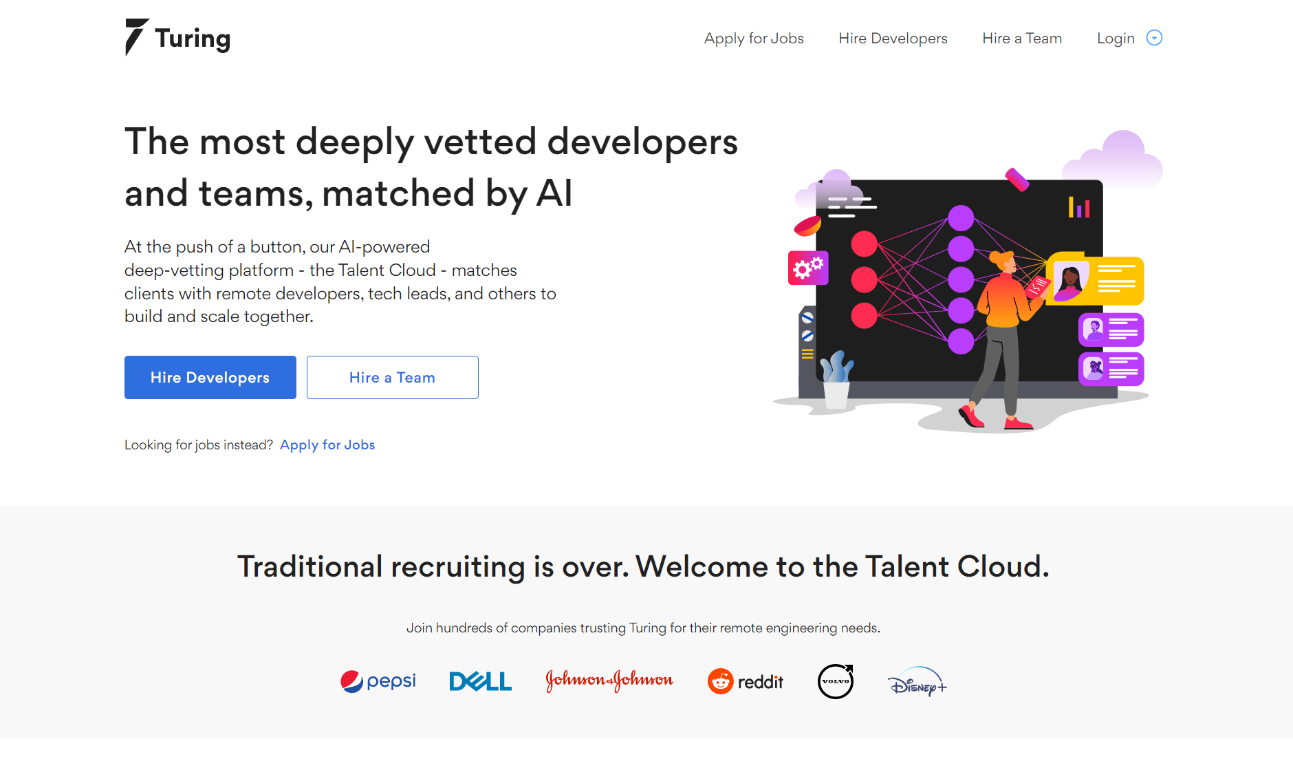 Turing利用人工智能技术,在全球范围内为使用其服务的客户优化人才匹配。对于雇主而言,使用Turing的平台进行招聘可以节省 50 多个小时的面试时间,同时匹配成功率高达 97%。对于其平台上的候选人而言,他们在家里就可以远程为硅谷以及全美的顶级公司工作,获得不错的薪资报酬。