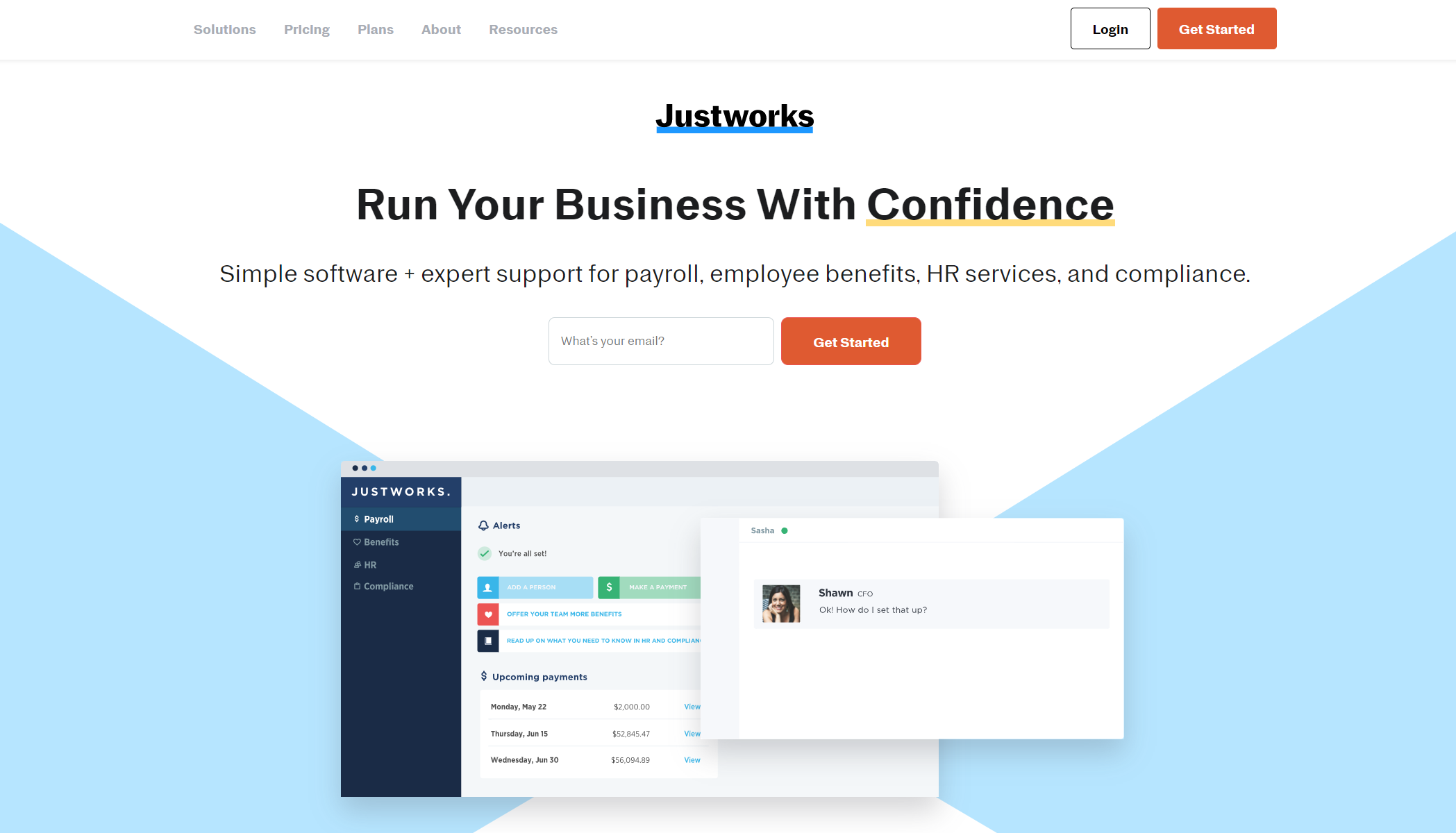 Justworks于2012年在纽约成立,是一家为企业管理人力资源、薪资、福利和合规程序的在线平台。Justworks 是一家SaaS领域人力资源和薪资管理创业公司,为中小型企业客户提供有关薪资、人力资源、福利和政府合规等方面的服务,其中包括医疗保险福利。其目标是提供一套更简单、更平易近人的工具,通过大量下拉菜单和窗口内窗口来消除一些令人头疼的问题,使一切更加精简和自动化,并减少公司发展过程中出现的人为错误。不像其他的HR领域 SaaS 供应商,Justworks 直接与运营商,如蓝十字与蓝盾协会(Blue Cross Blue Shield)合作,为雇主节省高达30%的的医疗保健费用。