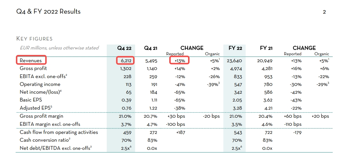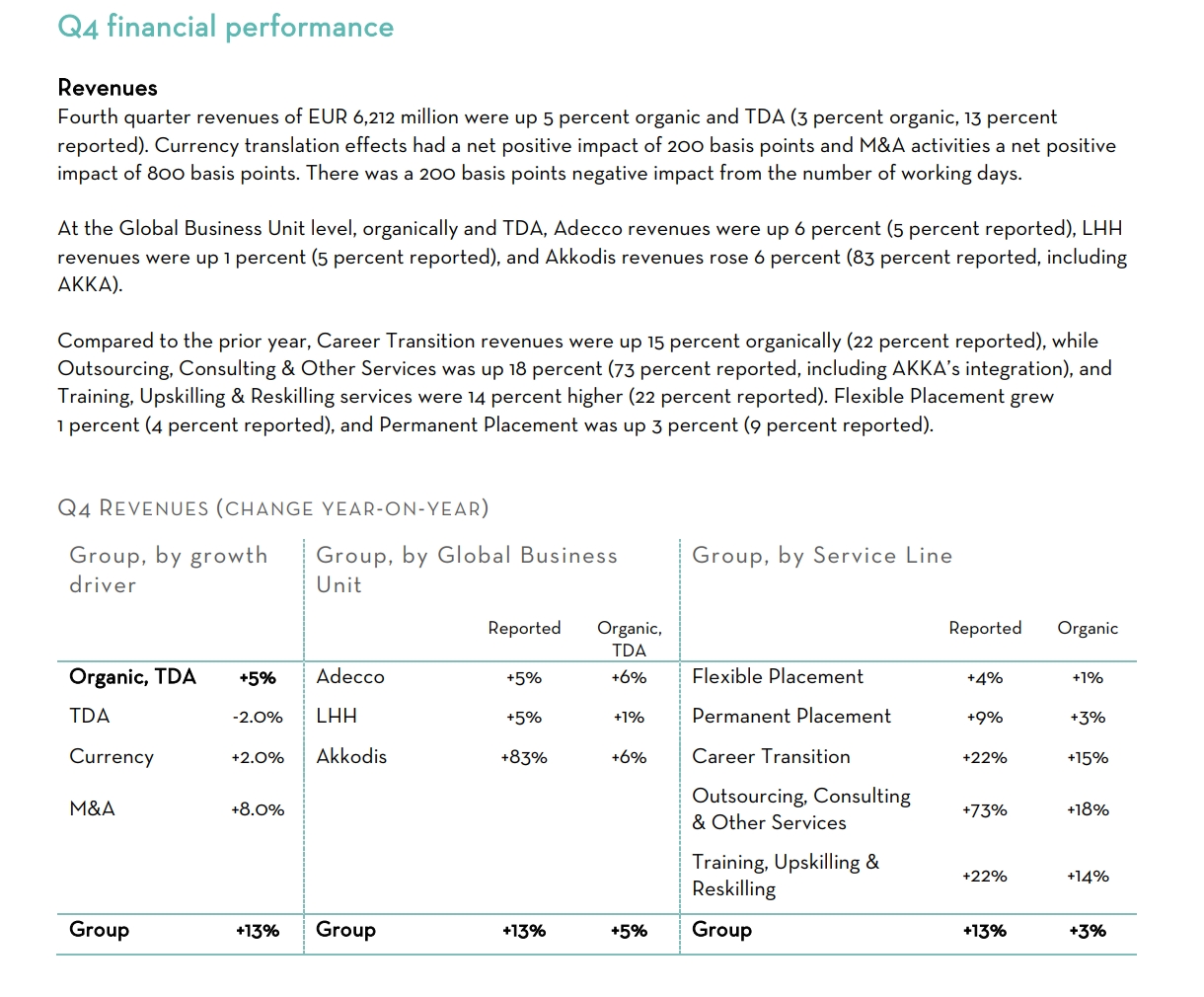 集团在2022年以一个强劲的季度收尾。我们在第四季度实现了出色的增长,大大超过了我们的市场预期。新合并的Akkodis业务表现良好,超额完成了2022年的目标。此外,我们的数字辅导业务Ezra也取得了强劲的增长。因为美国科技行业正在推动企业重组,因此我们的职业过渡业务也取得了出色的业绩,