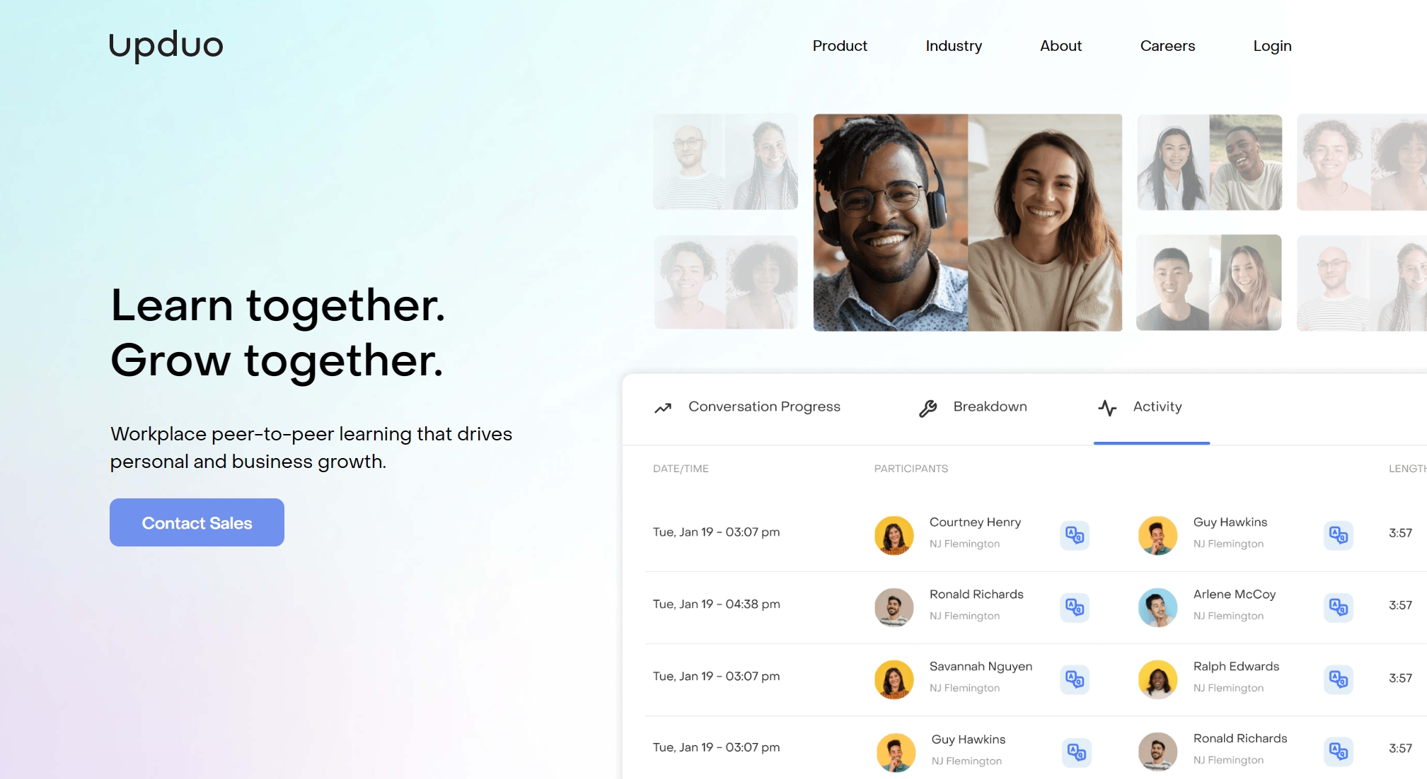 Upduo 能够识别员工的知识差距,并将合适的员工匹配在一起以练习关键技能。Upduo指导员工之间公司重要的话题进行有意识的对话。