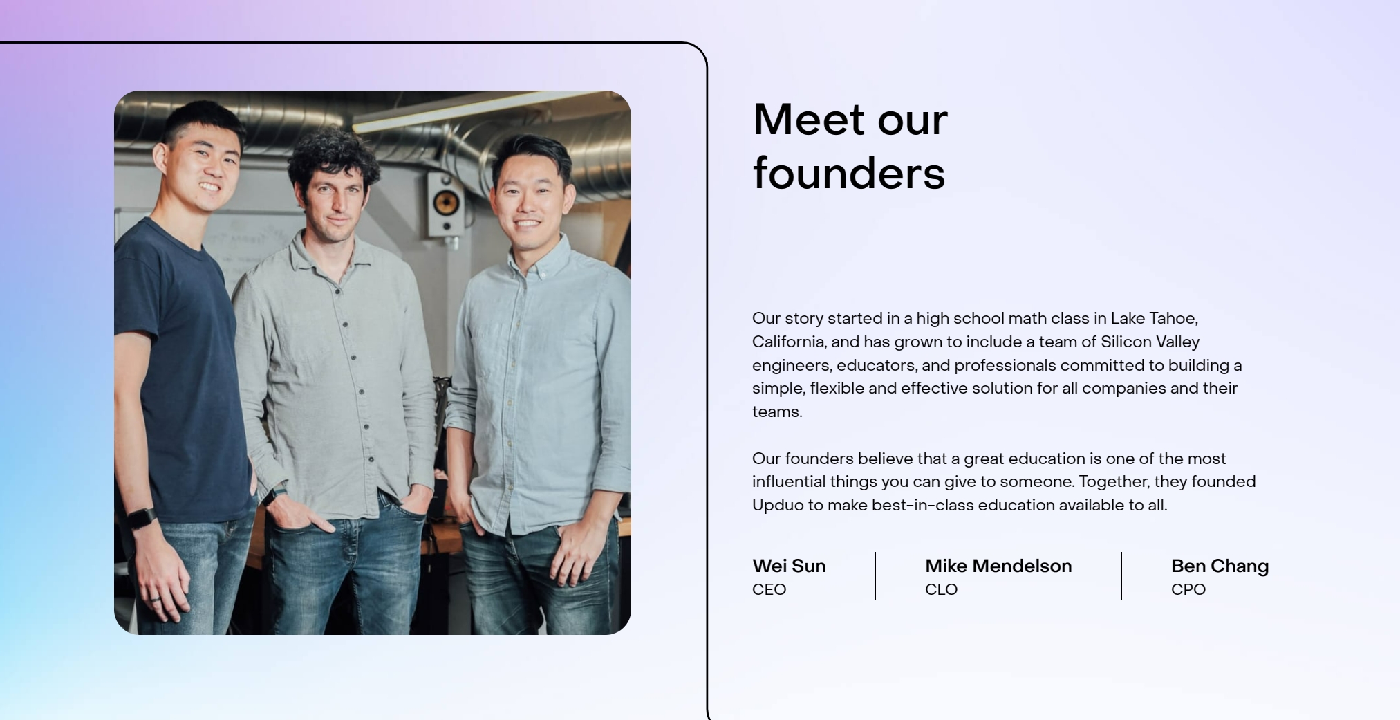 自2020年以来,Upduo已提供超过50万次学习课程,团队分布在1000多个客户地点。Upduo与亚马逊、摩托罗拉、麦肯锡和Prime Communications等知名客户合作。在于Upduo合作之后,这些组织的员工保留率和销售量都得到了明显增长。