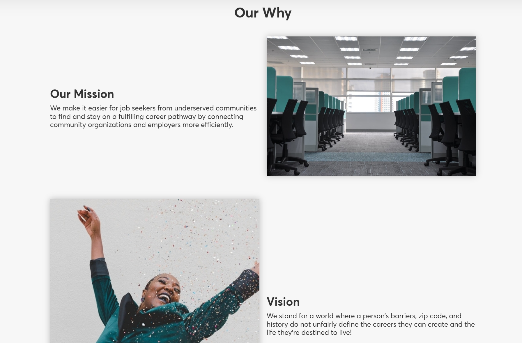我们必须在我们的劳动力队伍中寻找未开发的、代表性不足的、多样化的和被忽视的人才,以帮助人们克服贫困。但对于公司来说,这样做的成本很高,因为总有人不使用LinkedIn或Indeed,而是利用社区组织来获得就业机会。我们发现,企业只要与50到200个社区组织合作,他们就可以获得相较于之前超过两倍的职位候选人。