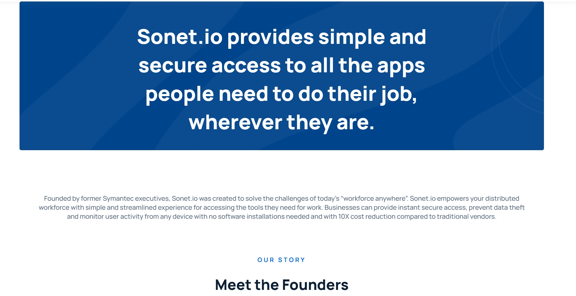 Sonet.io 由首席执行官Dharmendra Mohan和首席技术官Venu Banda创立,旨在解决当今“随处可见的员工队伍”的挑战。Sonet.io能够为分布式员工提供简单而简化的体验,使他们能够访问工作所需的工具。