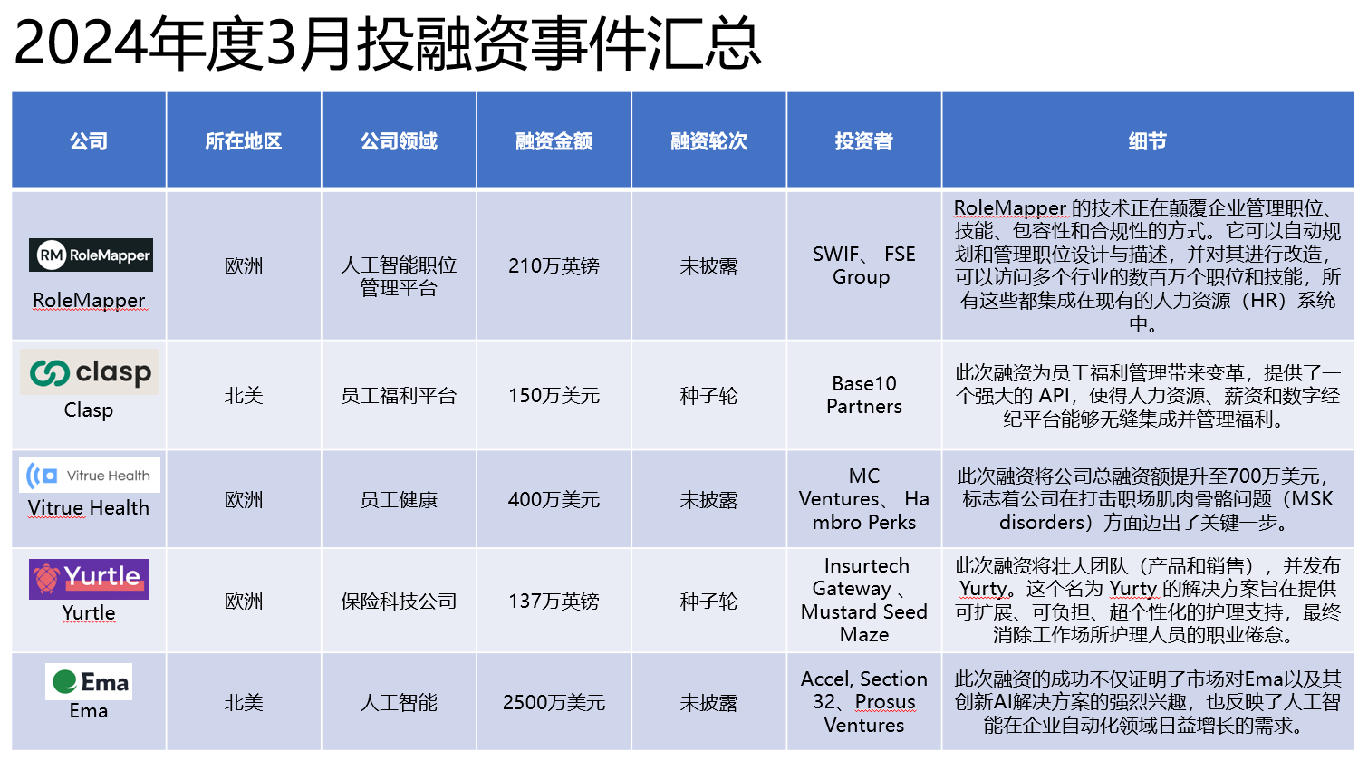 【投融资3月月报】2024年3月全球人力资源科技投融资简报!