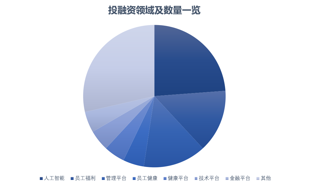 在本月HRTech投融资报道细分领域方面,主要涉及:人工智能(5起)、员工福利(3起)、管理平台(3起)、员工健康(1起)、健康平台(1起)、技术平台(1起)、金融平台(1起)、其他(6起)。投资领域重心板块以人工智能(5起)、员工福利(3起)、管理平台(3起)为主。