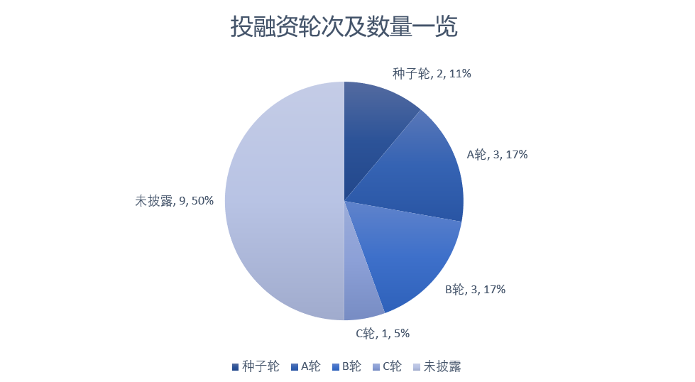 在融资轮次上:本月融资轮次以A轮融资、B轮融资及未披露融资轮次为主。种子轮融资报道了2起,A轮融资报道了3起,B轮融资报道了3起,C轮融资报道了1起,未披露融资报道了9起。