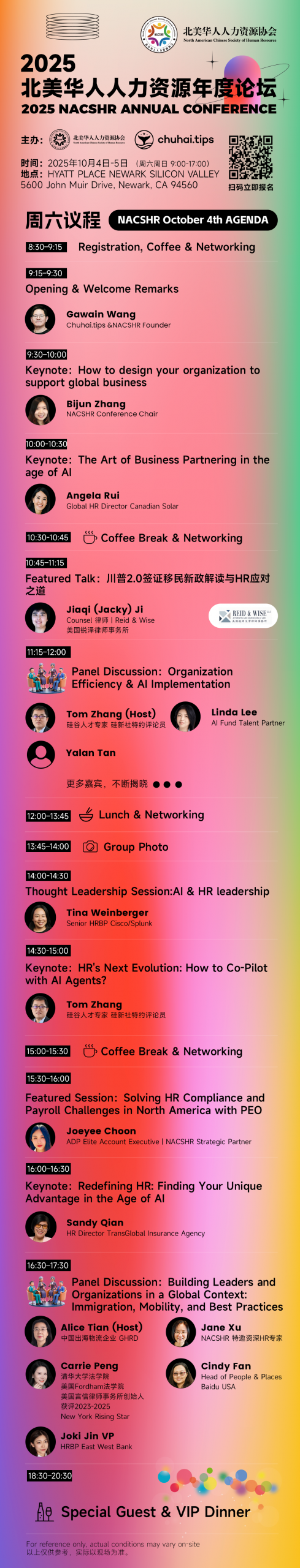 2025北美华人人力资源年度论坛完整日程重磅发布(附录在文章最后)