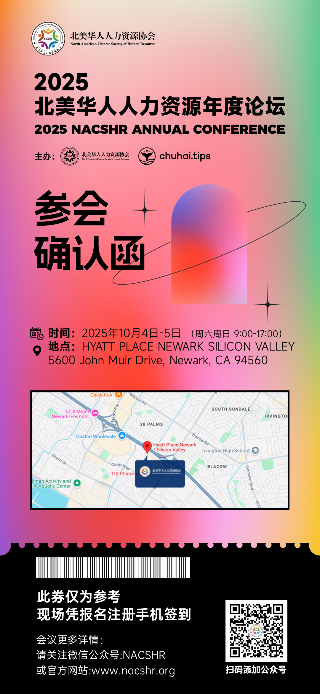 各位嘉宾,非常欢迎参加NACSHR北美华人人力资源年度论坛!期待周末见!