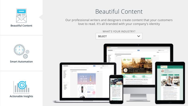 成立于 2012年,是一个帮助企业主与他们的客户保持高度关联,并将在线参与转化为收入的市场营销自动化平台。它的云计算功能可以为各种行业自动传送及时性的定制邮件和社交内容营销方案。其非接触式的个性手段可以帮助中小型企业培养自己的客户,节省企业在这方面耗费的精力。
